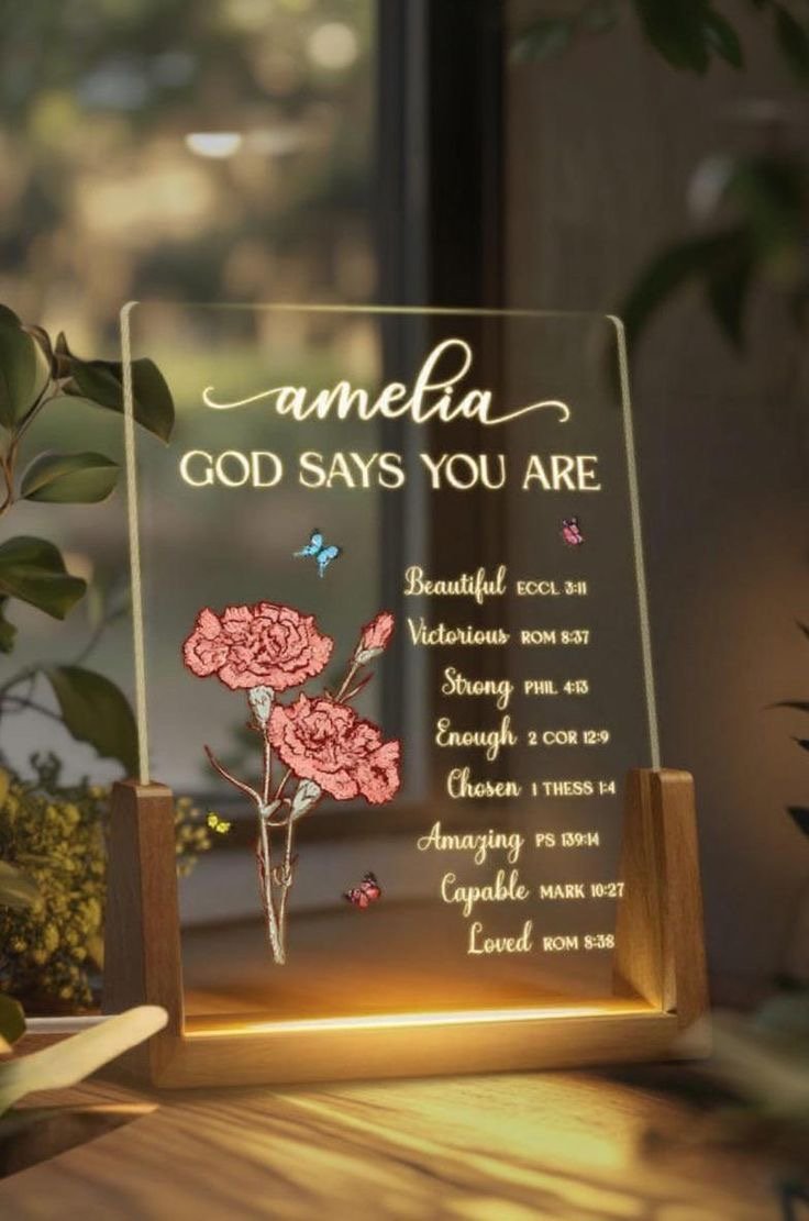 A plaque engraved with her favorite Bible verse is a constant reminder of God’s promises. Placed on a desk, shelf, or wall, it serves as a daily encouragement, reminding her of God’s faithfulness in every season of life.
