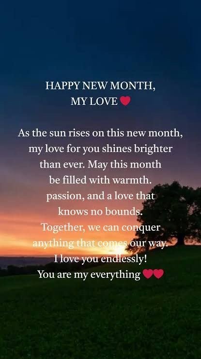 - “Happy new month, my love. May every day bring you closer to your goals, and may our love grow deeper.”