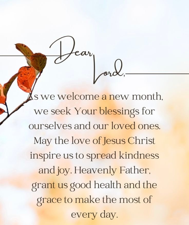 As you step into this new month, may your life overflow with joy, peace, abundance, and love. May your relationships thrive, your faith deepen, and your heart remain anchored in gratitude. Let every day remind you that the best is still ahead, and God’s goodness will shine over you. Truly, this new month will be filled with testimonies.