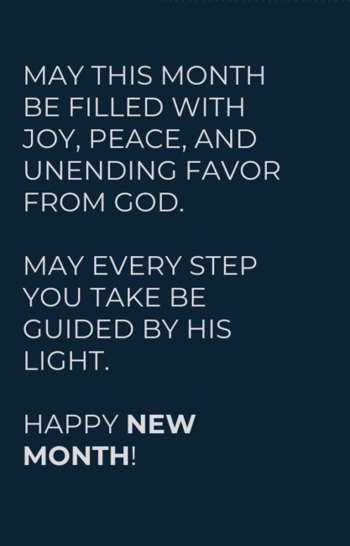 May this new month bring you fresh beginnings, open doors, and joyful surprises. May God’s grace walk with you and His mercy guide your steps each day. - “The beauty of a new month is that yesterday’s worries are left behind, and tomorrow’s hopes are reborn.”