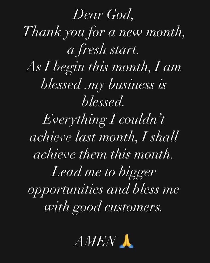 Lord, this new month, I pray that every closed door will be opened in my favor. May opportunities locate me, and may blessings chase after me. Let this month bring breakthroughs in my life, in my work, in my studies, and in all that I lay my hands on. Remove every obstacle standing in my way, and let Your favor make a way where there seems to be none.