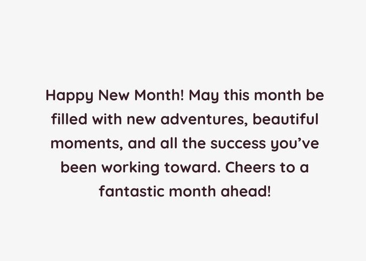 5. Happy new month! May the days ahead be brighter, your burdens lighter, and your blessings greater than ever before.