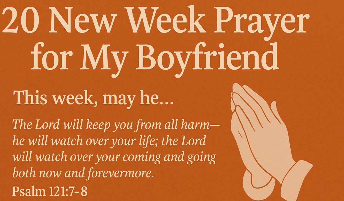 As this new week unfolds, praying for your boyfriend is a beautiful way to show love, care, and faith. These prayers are not just words—they are powerful declarations that call upon God’s presence, provision, and protection over his life. Every prayer rooted in scripture plants seeds of blessing that will bear fruit in his daily walk. By covering his health, work, dreams, relationships, and future in prayer, you are inviting God to be the foundation upon which his week is built.