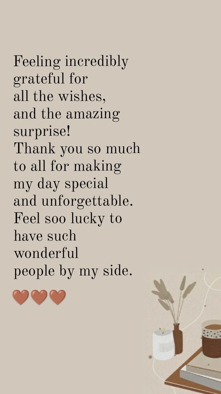- “I can’t express how grateful I am for all the beautiful wishes. They truly made me feel loved and appreciated.”